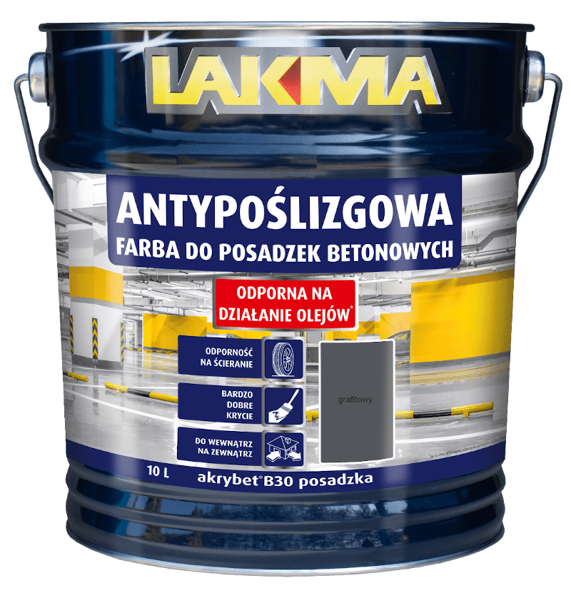 Rozpuszczalnikowa, antypoślizgowa farba akrylowa do posadzek charakteryzującą się wysoką odpornością na ścieranie. Odporna na krótkotrwałe działanie rozcieńczonych kwasów i zasad.