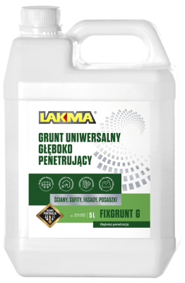 FIXGRUNT G przeznaczony jest do wstępnego gruntowania starych i chłonnych powierzchni, które z uwagi na upływ czasu straciły właściwe parametry. Produkt wzmacnia podłoże, zabezpieczając je przed pyleniem lub przed nadmiernym ścieraniem zarówno wewnątrz jak i na zewnątrz pomieszczeń takich jak: gazobeton, tynki wapienne, tynki cementowe, betony, podłoża gipsowo – kartonowe, jastrychy, posadzki wyrównujące, samopoziomujące i gładzie gipsowe. Preparat stosuje się przed malowaniem farbami LAKMA (akrylowe, silikonowe, silikatowe, lateksowe, emulsyjne, satynowe), przed tapetowaniem oraz przed klejeniem płytek.